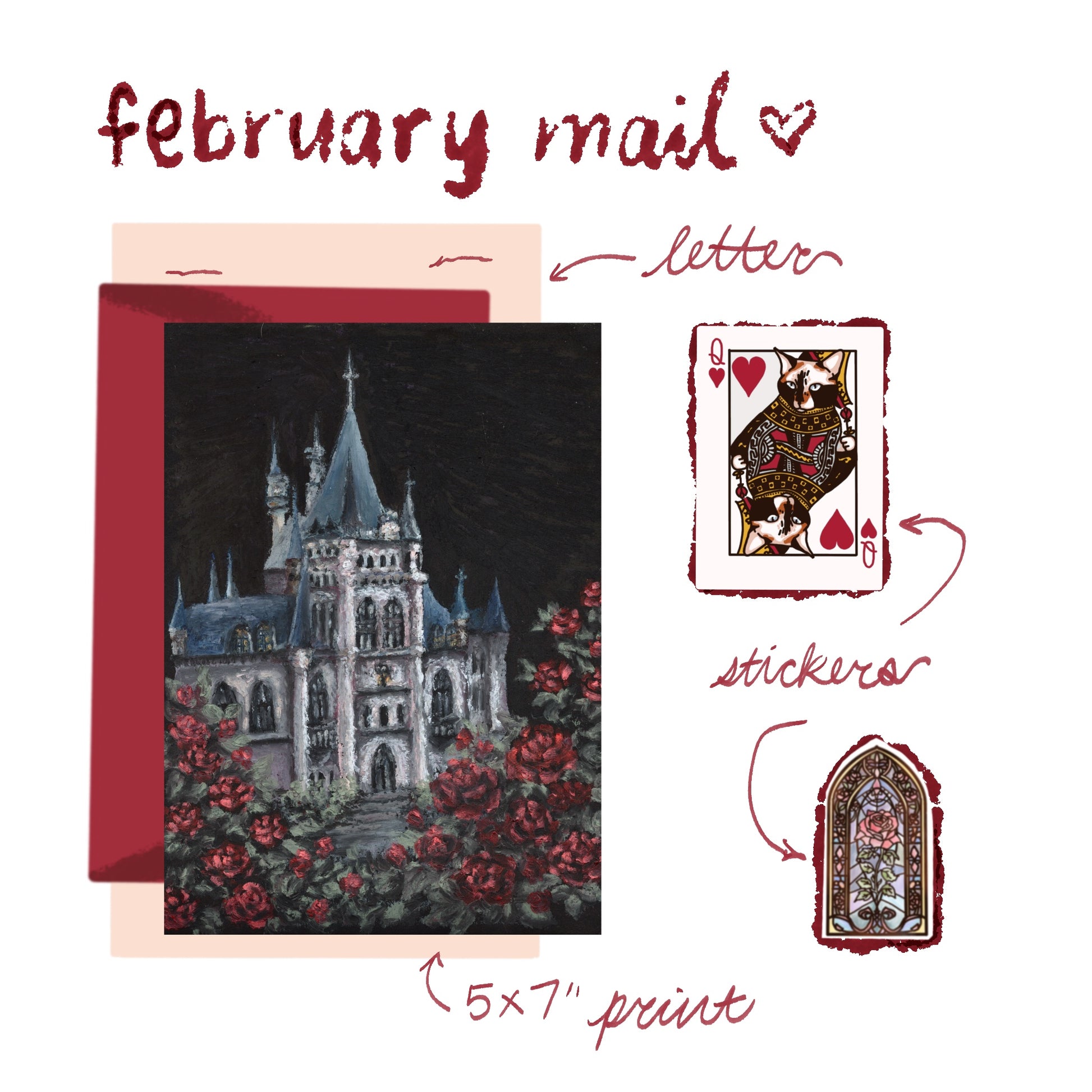 - On the 1st business day of every month, an envelope with art and goodies will be shipped to you, curated by me.